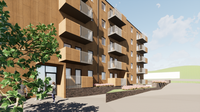 Husen kommer innehålla 66 bostäder i storlekarna 1-4 rum och kök. I ett av bostadshusen kommer en separat gruppbostad integreras med nio bostäder för särskilt boende.