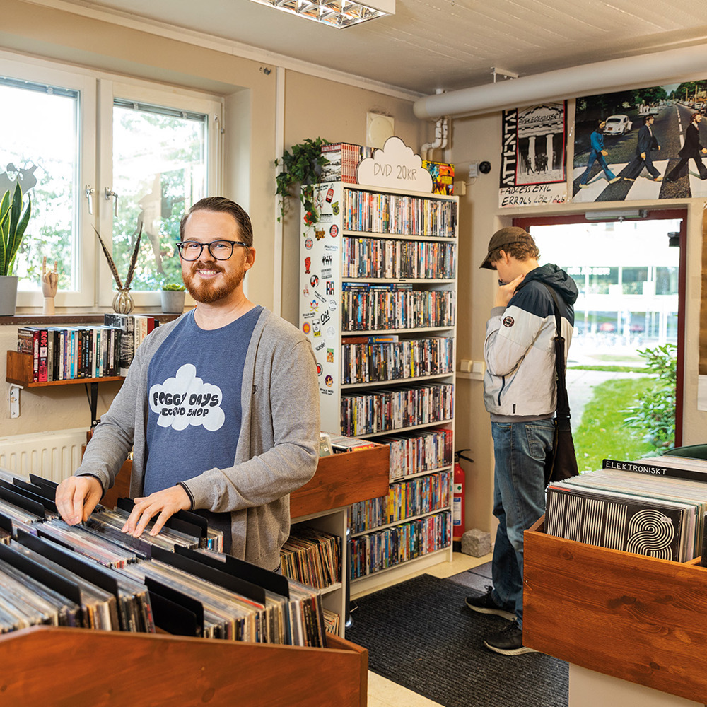 Sedan mars 2021 driver Tobias Jardving butiken Foggy Days Record Shop på Storgatan 26. Butiken speglar hans egen breda musiksmak – och kärlek till vinylskivor.